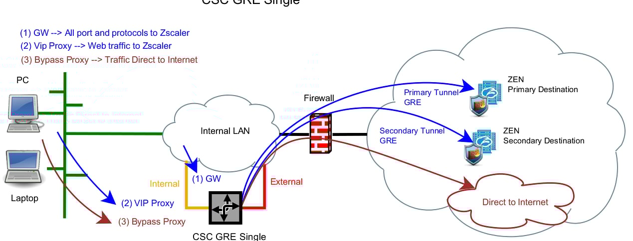 In addition to this, the CSC provides high availability changing the default route to Zscaler when configured as High Availability pair, and an easy way to manage direct bypasses to trusted sites using your public IP.